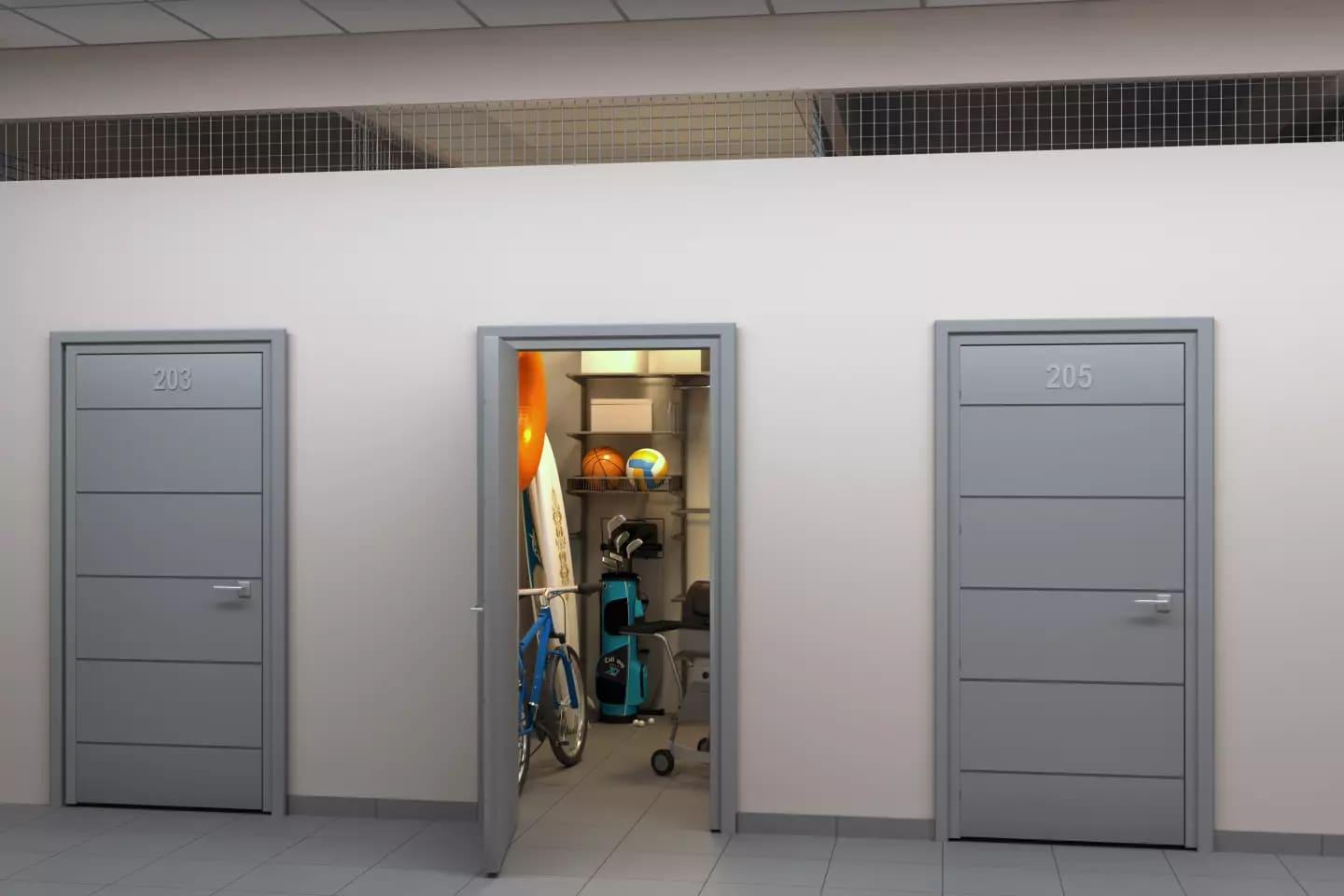 При проектировании "Альба дель Маре" учтены нюансы хранения крупногабаритных вещей, сезонного и спортивного инвентаря, пляжных принадлежностей. Для этого запроектированы оборудованные места для хранения - вместительные кладовые, которые можно приобрести вместе с апартаментами.