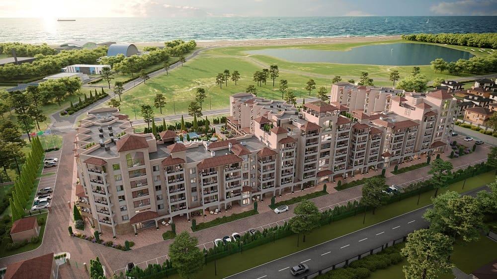 "Альба дель Маре" (коммерческое наименование "Alba del Mare") - уникальный комплекс апартаментов переменной этажности (5-7 этажей) в средиземноморском стиле, расположенный всего в 400 метрах от моря.