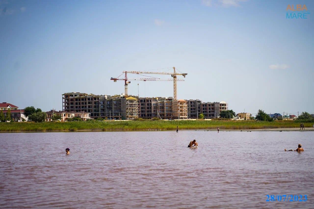 Комплекс апартаментов "Альба дель Маре" находится на улице Аллея Дружбы, которая соединяет Евпаторию с пригородным посёлком Заозёрное. Это буквально в минуте ходьбы от знаменитых грязевых водоёмов - Яло-Мойнакских озёр, и в 5 минутах неспешным шагом - от современного песчаного пляжа "Супер Аква".