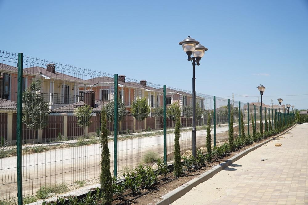 Ландшафтные дизайнеры создали эстетически привлекательную среду вокруг комплекса. В основе её лежит функциональное зонирование: здесь предусмотрены зона спокойного отдыха, пространство для прогулок, а также большая детская площадка.