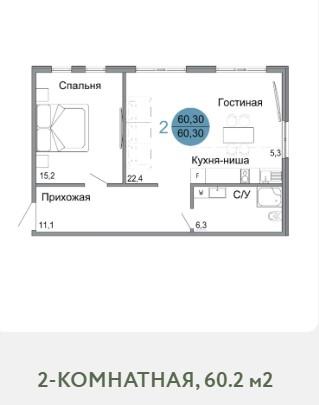 2-комнатная 60,20 кв.м - от 8 428 000 рублей;