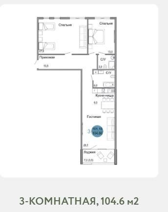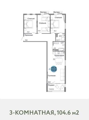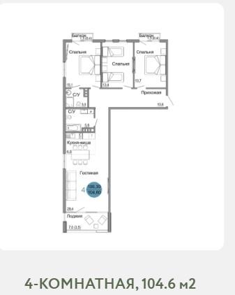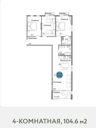 4-комнатная 104,6 кв.м. - от 12 552 000 рублей;