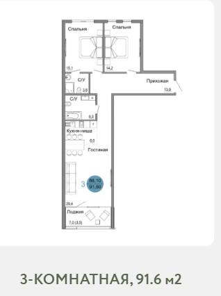 3-комнатная 91,60 кв.м. - от 10 992 000 рублей;