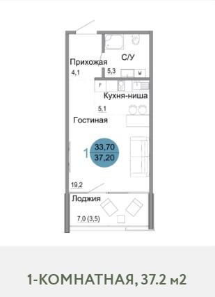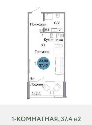 1-комнатная 37,40 кв.м - от 5 535 000 рублей;