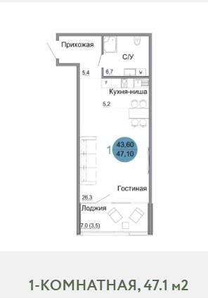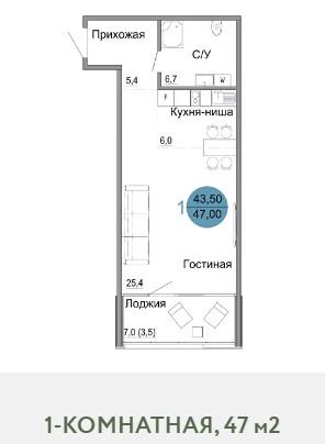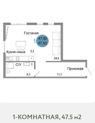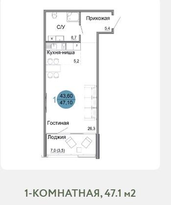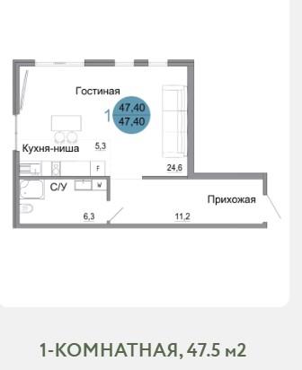 1-комнатная 47,50 кв.м - от 5 535 000 рублей;