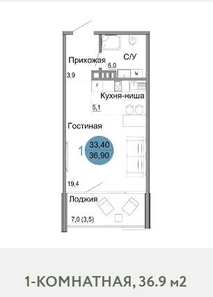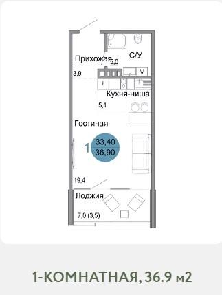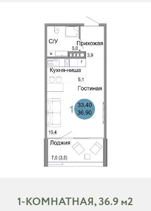 1-комнатная 36,90 кв.м. - от 5 535 000 рублей;
