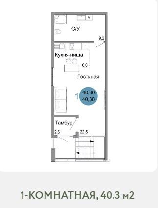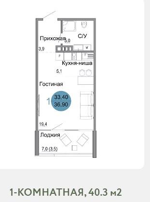 1-комнатная 40,30 кв.м - от 5 535 000 рублей;
