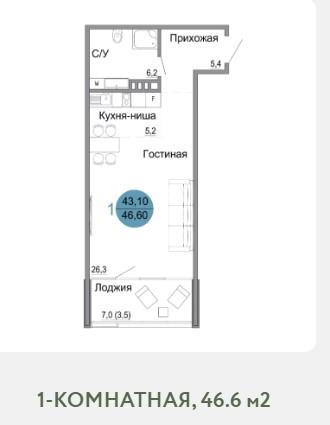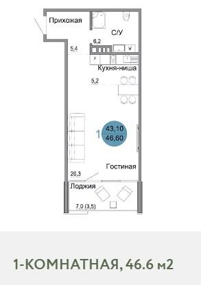 1-комнатная 46,60 кв.м - от 5 535 000 рублей;