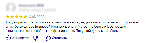 Хочу выразить свою признательность агентству недвижимости Эксперт+.