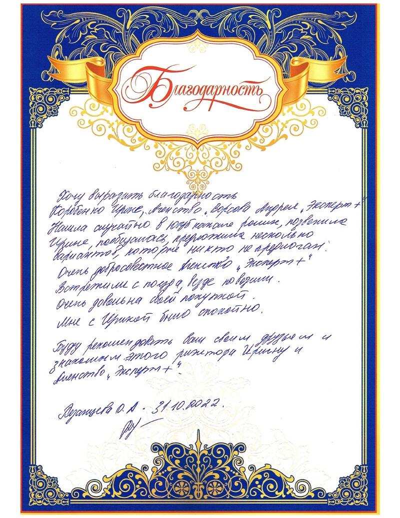 ЗаботаХочу выразить благодарность Коробенко Ирине, агентство Ворсова Андрея "Эксперт+".