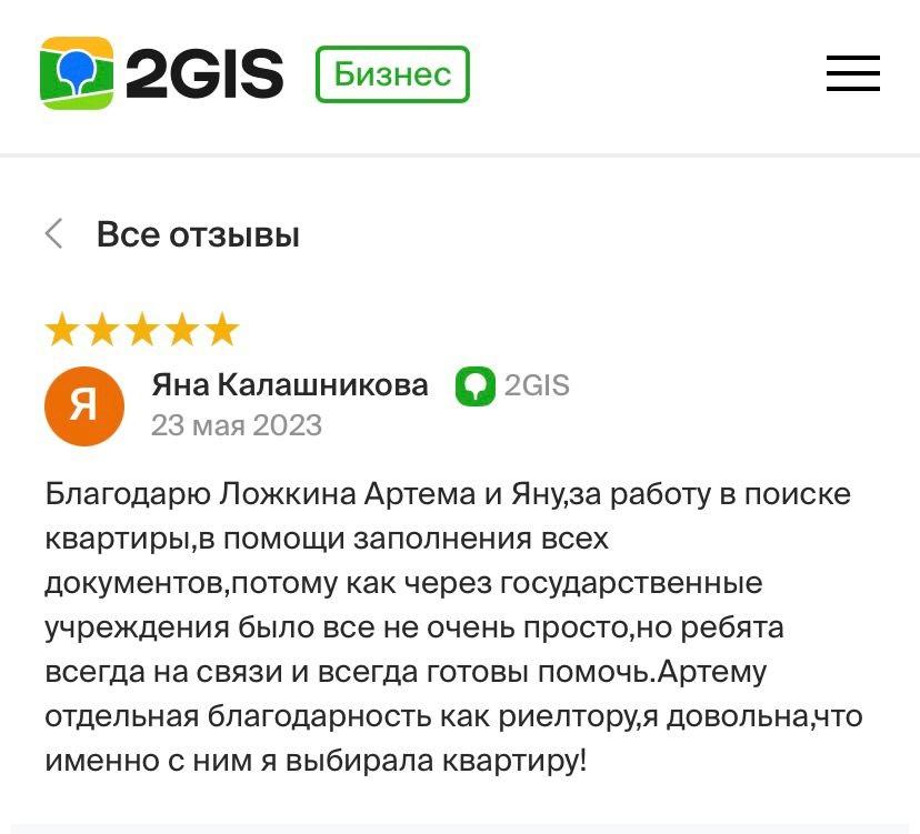 ЗаботаБлагодарю Ложкина Артёма и Яну, за работу в поиске квартиры, в помощи заполнения всех документов, потому как через государственные учреждения было всё не очень просто, но ребята всегда на связи и всегда готовы помочь.