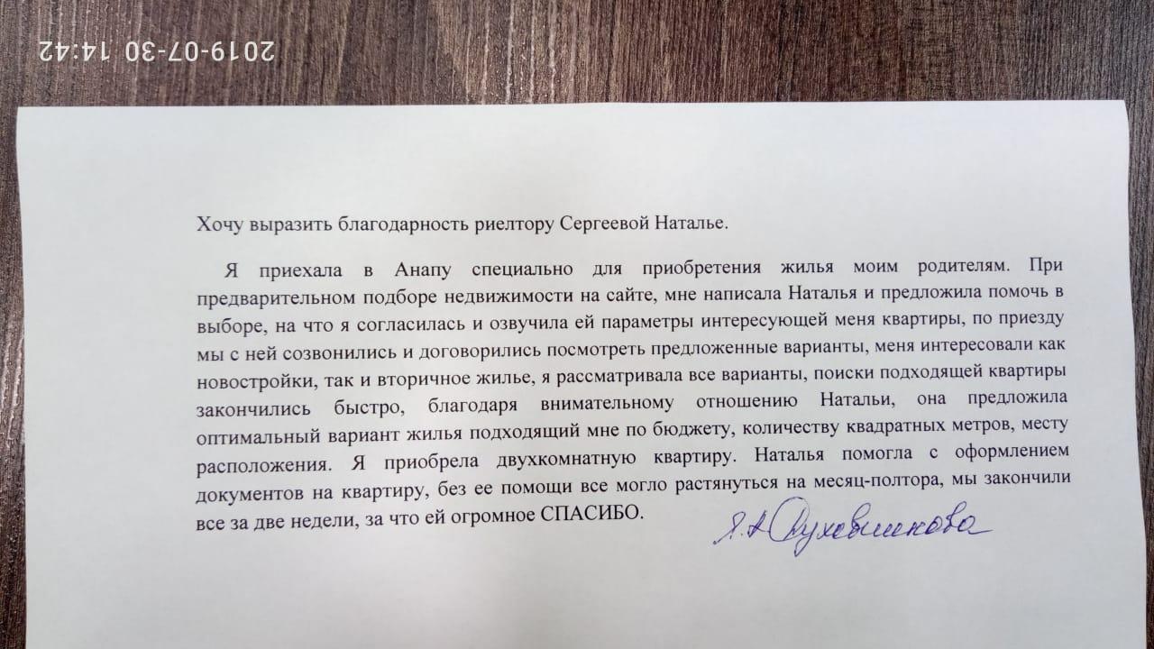 ЗаботаХочу выразить благодарность риелтору Сергеевой Наталье.