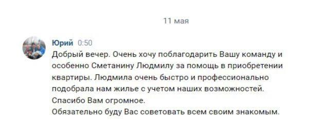 ЗаботаДобрый вечер. Очень хочу поблагодарить Вашу команду и особенно Сметанину Людмилу за помощь в приобретении квартиры.
