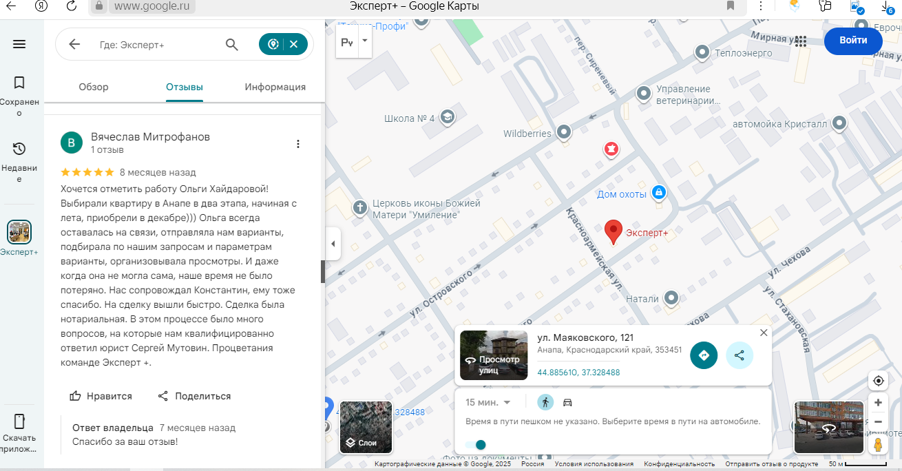 Ольга всегда оставалась на связи, отправляла нам варианты, подбирала по нашим запросам и параметрам варианты, организовывала просмотры.
