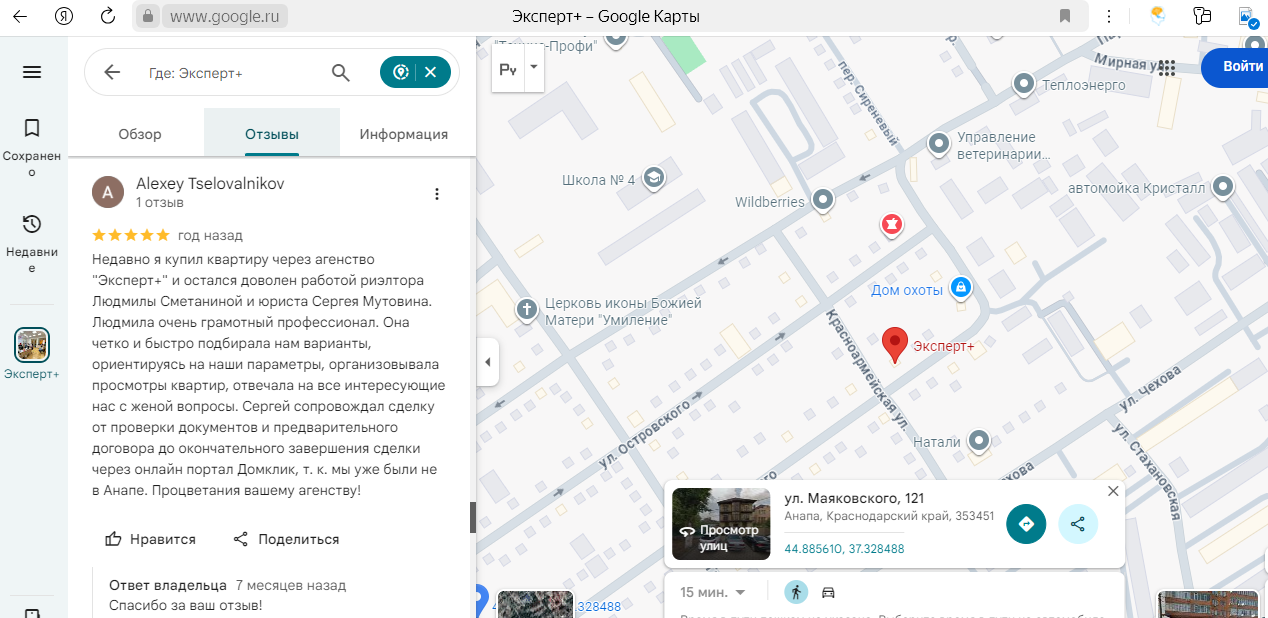 Сергей сопровождал сделку от проверки документов и предварительного договора до окончательного завершения сделки через онлайн портал Домклик, т. к. мы уже были не в Анапе.