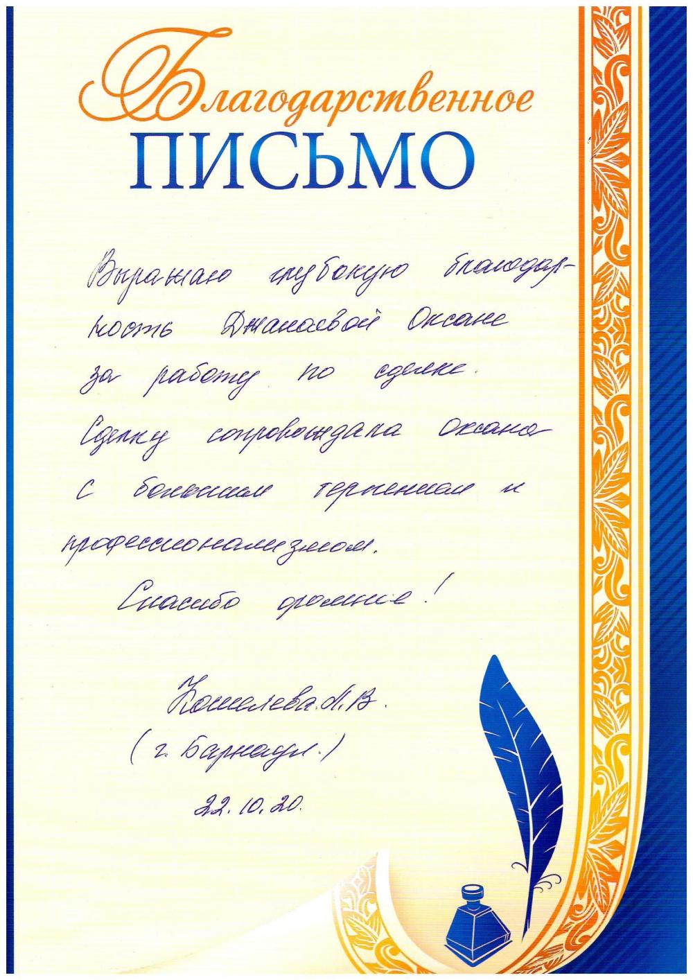 Благодарственное письмо