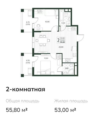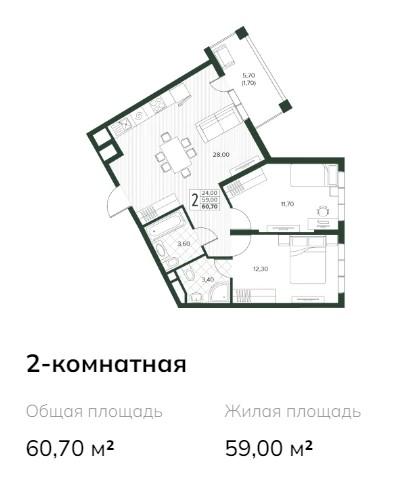 площадью от 34,4 до 48,3 кв.м. Их стоимость от 8 944 000 до 11 736 900 рублей соответственно;