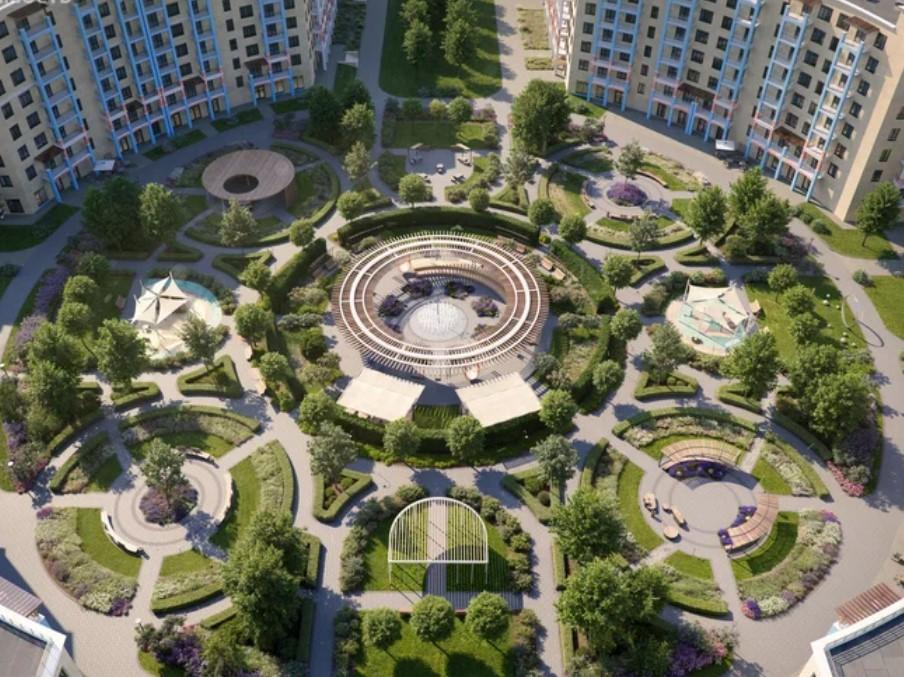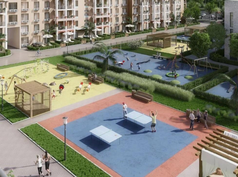 До ближайшего пляжа — около 50 минут ходьбы или 15 минут езды. В ЖК есть центральная кольцевая аллея — место притяжения жителей и гостей комплекса. По периметру выложены пешеходные дорожки для максимального удобства.