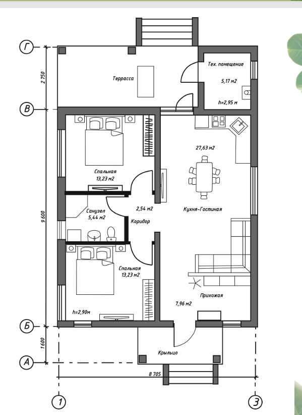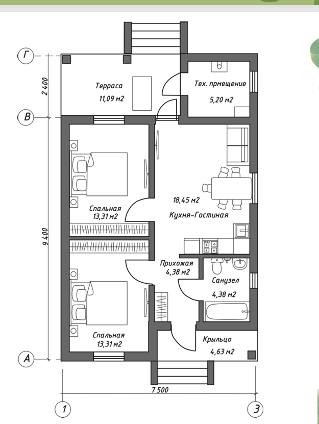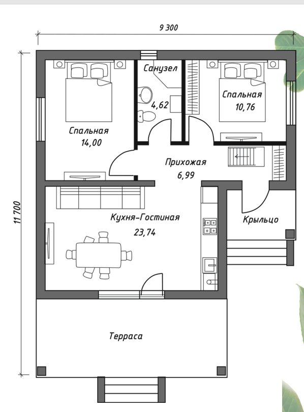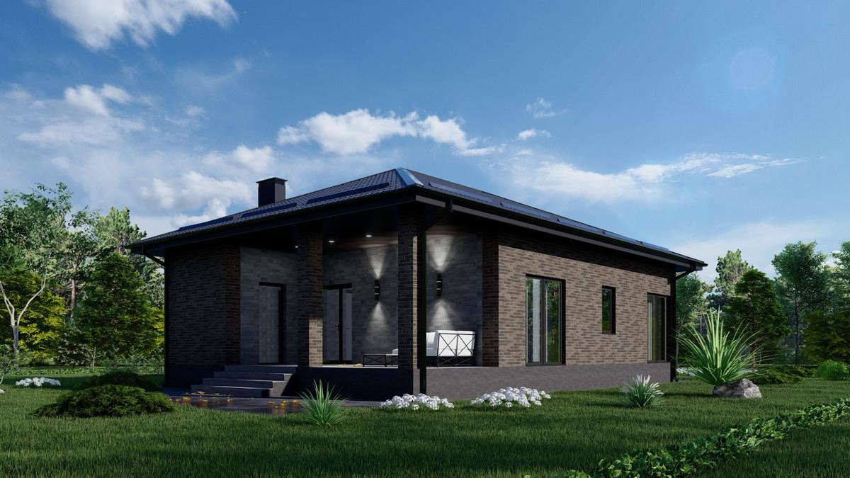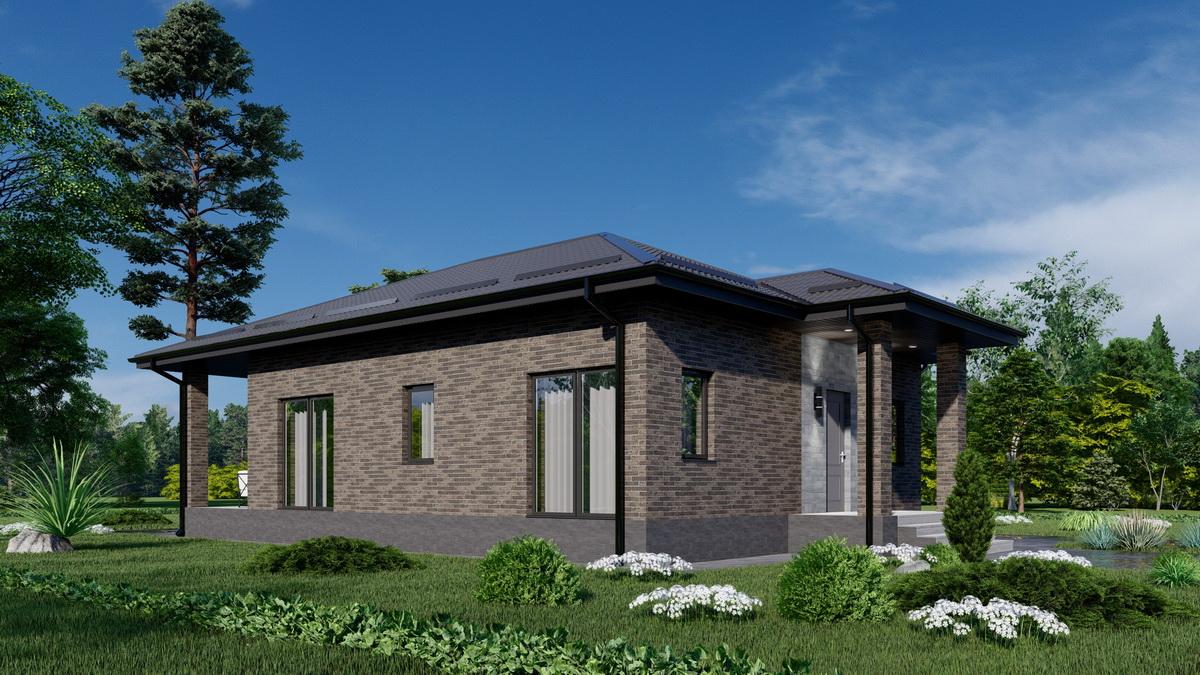 Одноэтажный дом 75 кв.м с просторной террасой, 2 спальнями, большой кухней-гостиной