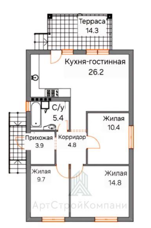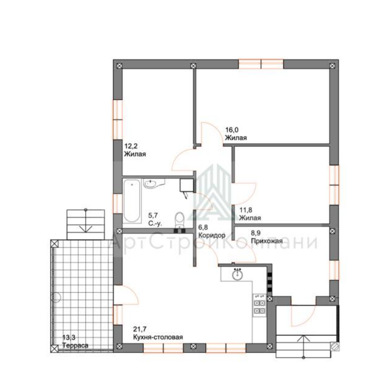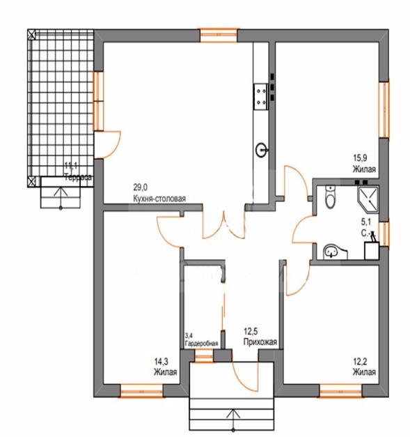 Дом 96 кв.м. «Классик изумрудный с террасой сзади»