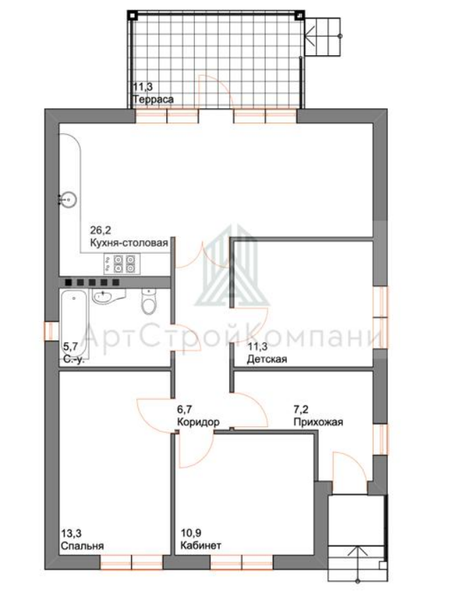Коттеджи сдаются в предчистовой отделке с проведенными инженерными сетями и коммуникациями. В типовых проектах предусмотрено чердачное помещение со складной лестницей, которое можно переоборудовать под полноценную мансарду.