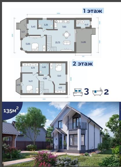 Цена коттеджа с земельным участком составляет от 8,25 до 10,07 млн. рублей, в зависимости от площади.