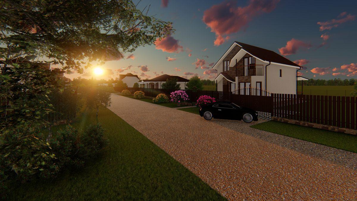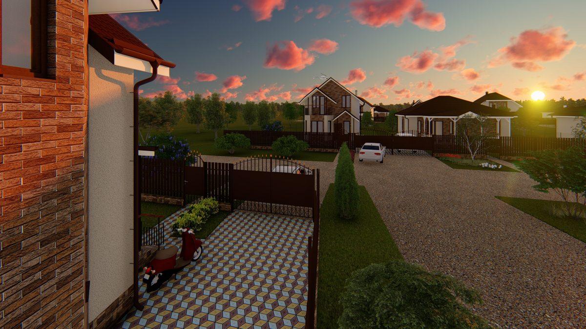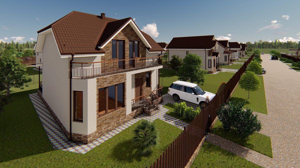 Дома выполнены в едином архитектурном стиле, что выделяет посёлок от близлежащих строений. Внешняя отделка сочетает в себе декоративную штукатурку и кирпич, кровля покрыта металлочерепицей тёмно-коричневого цвета. Все участки огорожены забором из евроштакетника (также в едином оформлении) + калитка и раздвижные ворота.