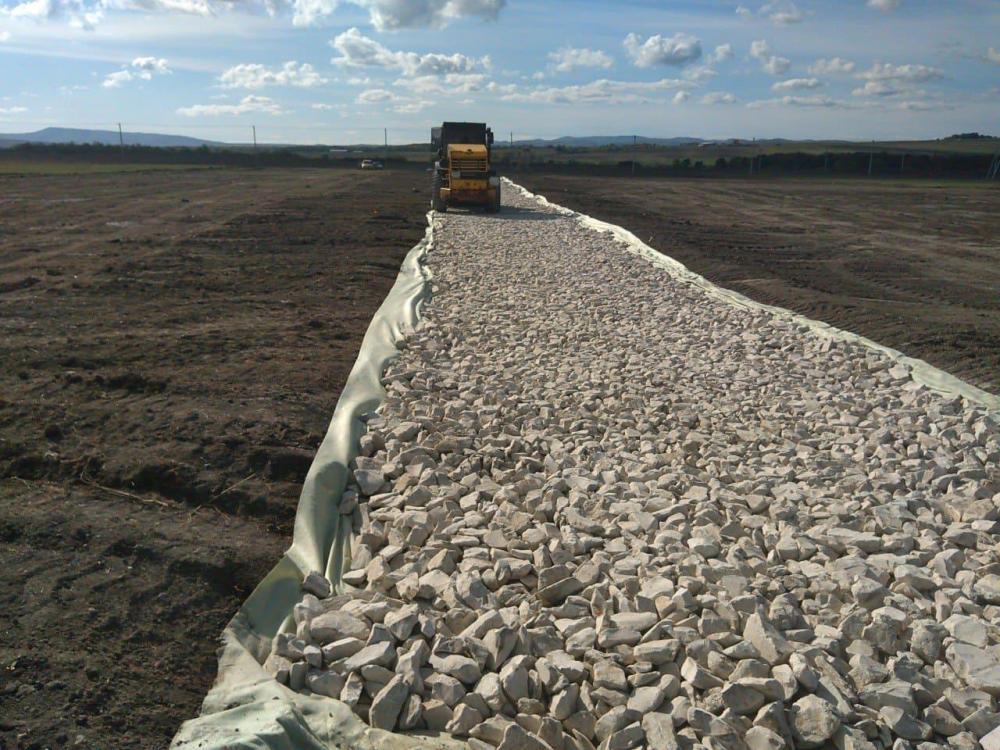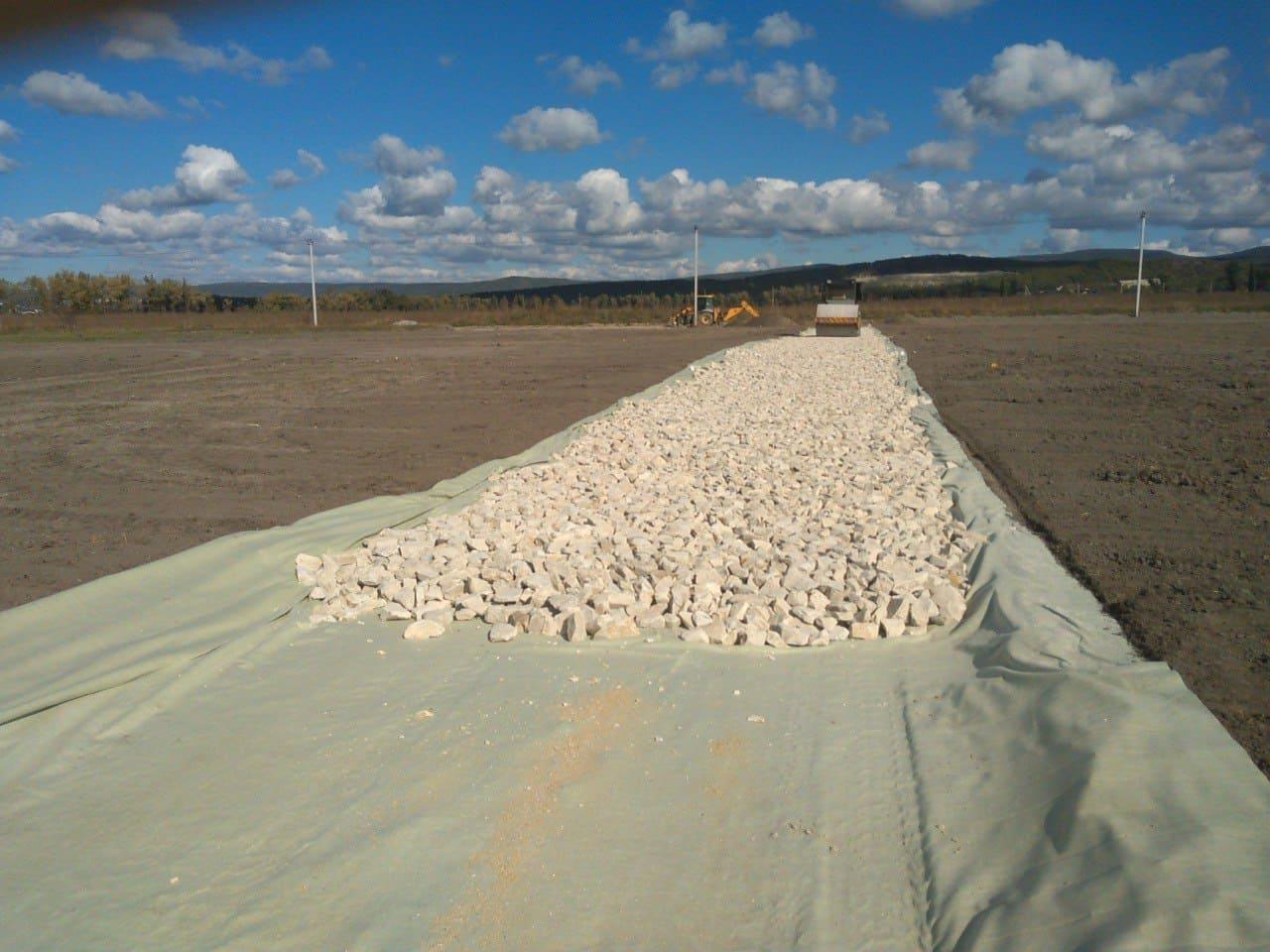 Покрытие внутренней дороги - щебёночное.