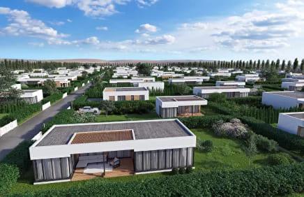 Как и принято в коттеджных посёлках, все дома будут выдержаны в единой архитектурной концепции "хай-тек", с панорамными окнами и крытыми террасами.