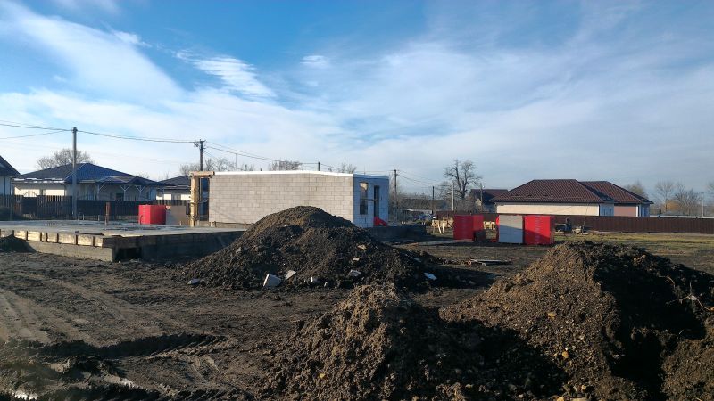 Фундамент ‒ железобетонный ленточный + монолитная плита. Материал стен ‒ газобетонный блок, облицованный декоративной штукатуркой и кирпичом, перекрытия ‒ балочные (в одноэтажных домах), либо железобетонные (в двухэтажных домах). Крыша ‒ металлочерепица. Металлические наружные двери и металлопластиковые окна.