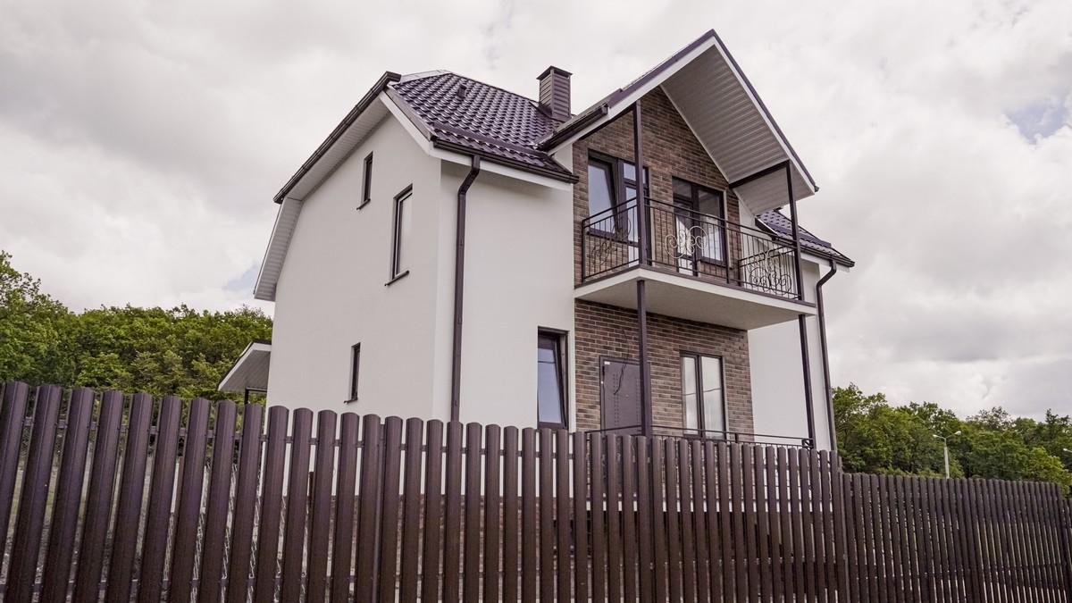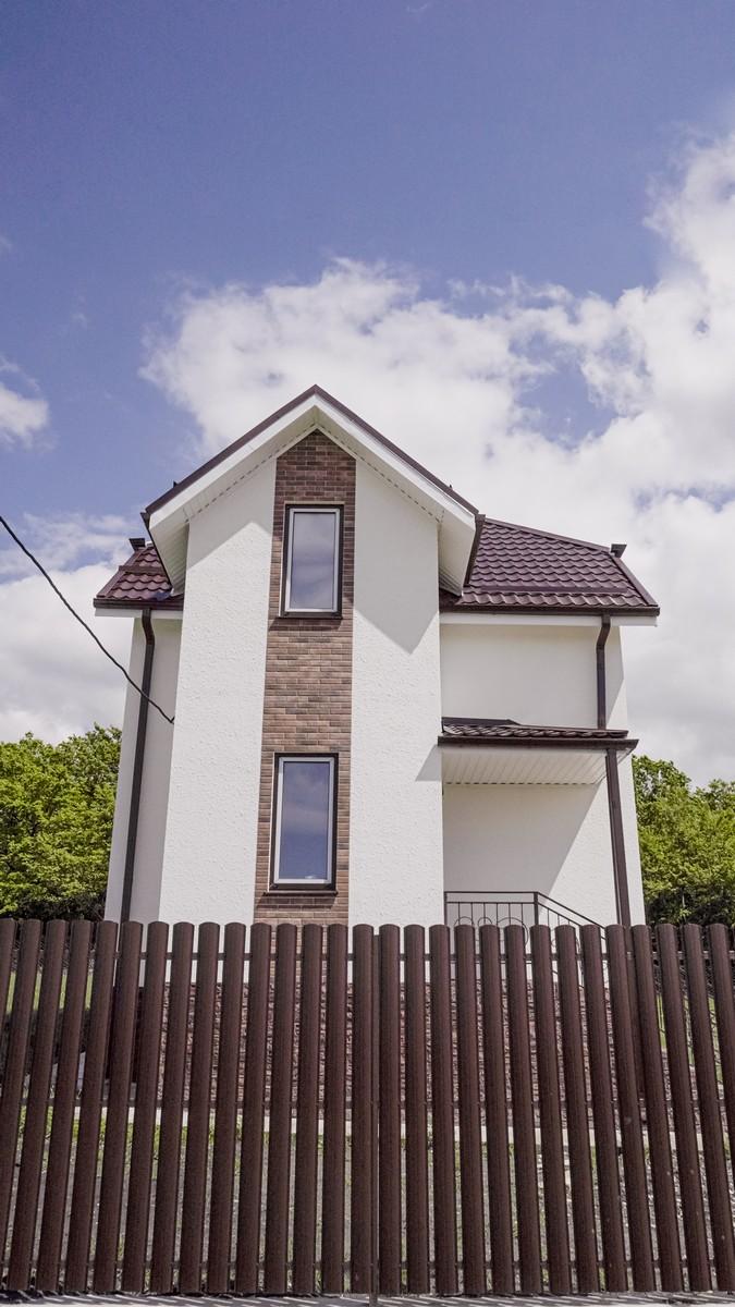 Смысл в том, что в определённый цвет выкрашены кровля, водосточная система, ограждение крыльца и террасы, входная дверь и ламинация окон. Декоративная штукатурка на всех домах белого цвета. Фото КП "У леса" представлены в галерее в конце статьи.