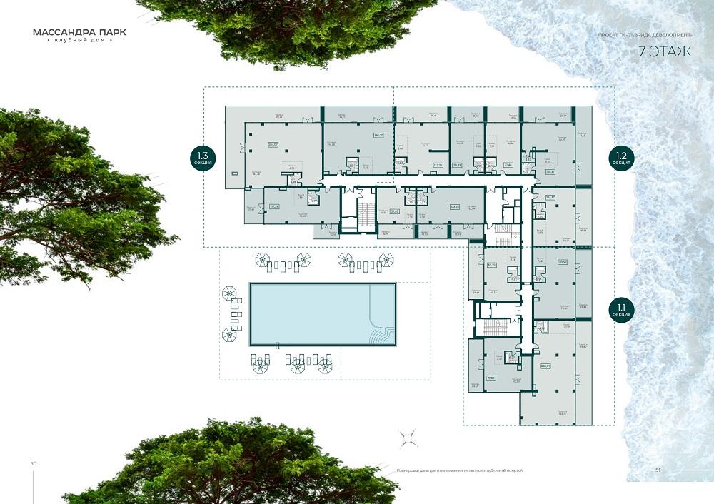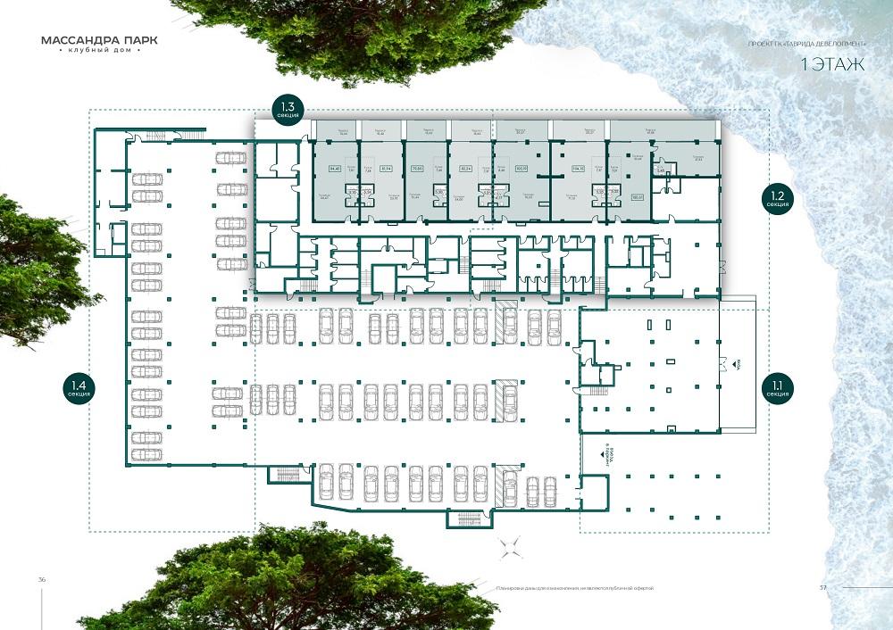 Клубный дом "Массандра Парк" представляет собой П-образное четырёхсекционное здание переменной этажности (до 9 этажей).