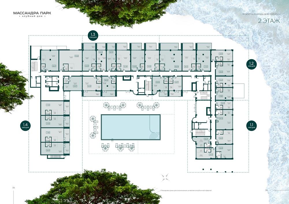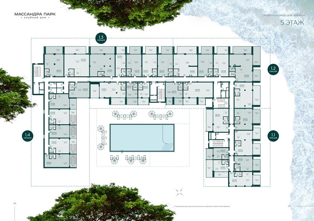 "Массандра Парк" рассчитан на 181 апартамент площадью от 26 до 244 кв.м. Большинство из апартаментов имеет вид на море.
