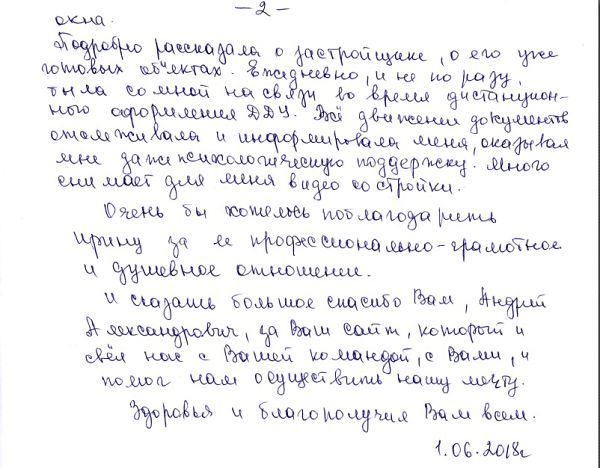 И сказать большое спасибо Вам, Андрей Александрович, за Ваш сайт, который и свел нас с Вашей командой, с Вами, и помог осуществить нашу мечту.