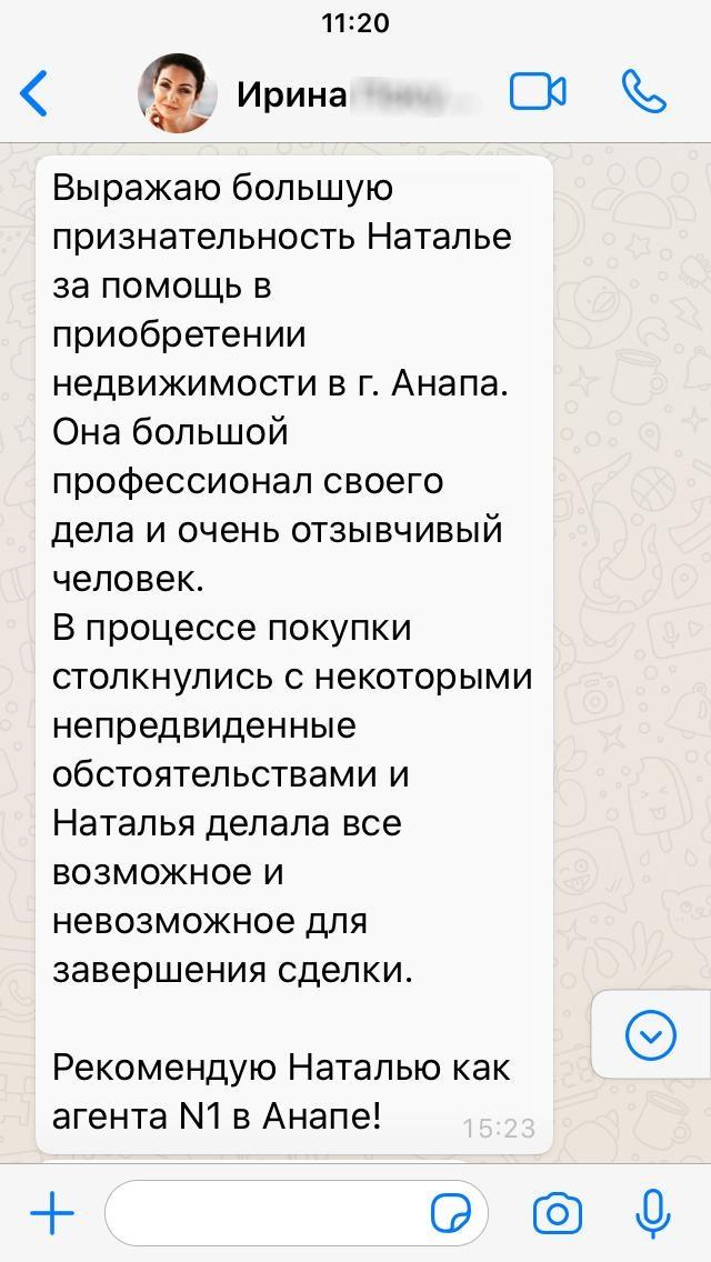 ЗаботаВыражаю большую признательность Наталье за помощь в приобретении недвижимости в г. Анапа.
