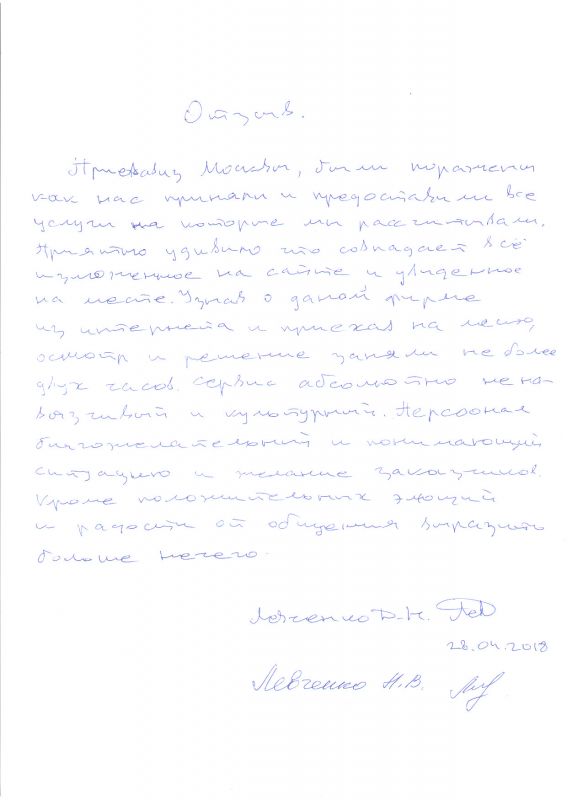 Узнав о данной фирме из интернета, я приехал на место, осмотр и решение заняли не более двух часов.