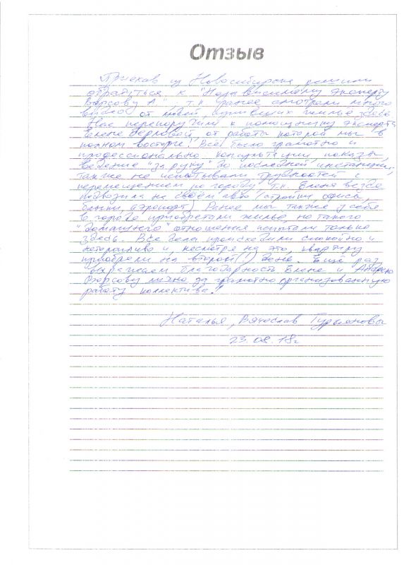 Нас перепоручили к помощнику эксперта Елене Берловой, от работы которой мы в полном восторге!