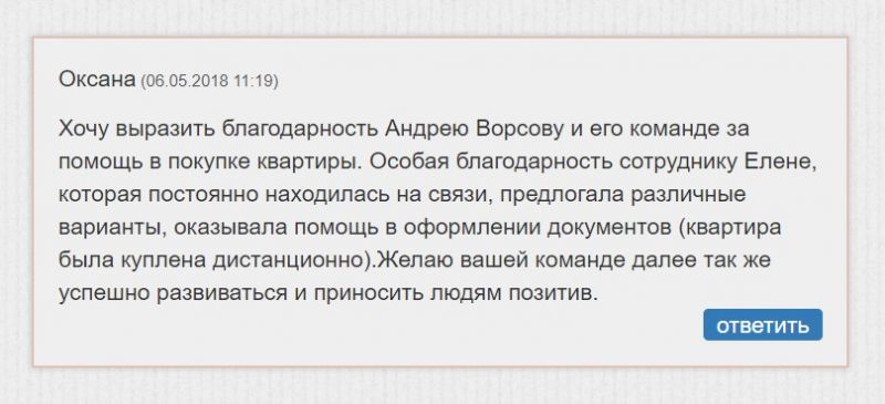 ЗаботаХочу выразить благодарность Андрею Ворсову и его команде за помощь в покупке квартиры.