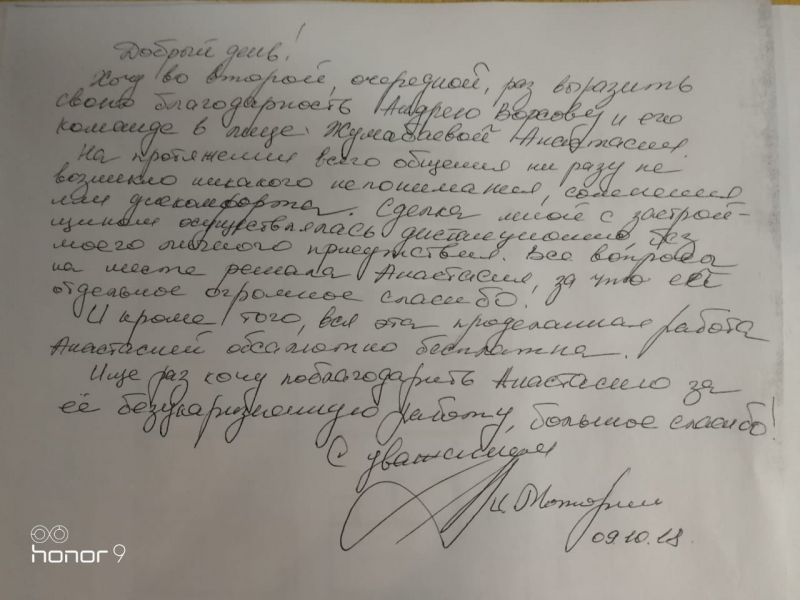 Еще раз хочу поблагодарить Анастасию за ее безукоризненную работу, большое спасибо!