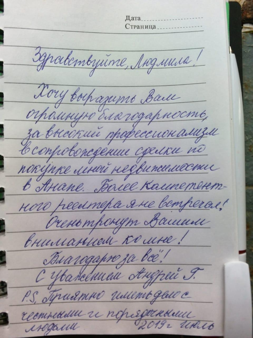 Хочу выразить Вам огромную благодарность, за высокий профессионализм в сопровождении сделки по покупке мной недвижимости в Анапе. Более компетентного риелтора я не встречал!