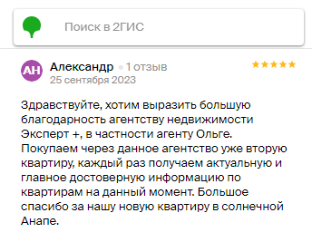 Большое спасибо за нашу новую квартиру в солнечной Анапе
