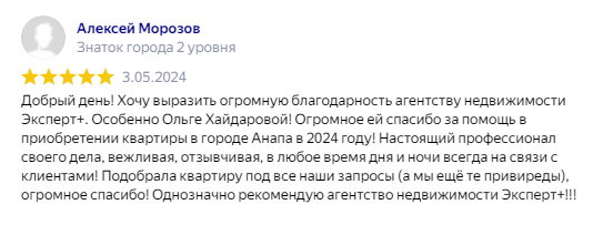 Особенно Ольге Хайдаровой! Огромное ей спасибо за помощь в приобретении квартиры в городе Анапа в 2024 году!