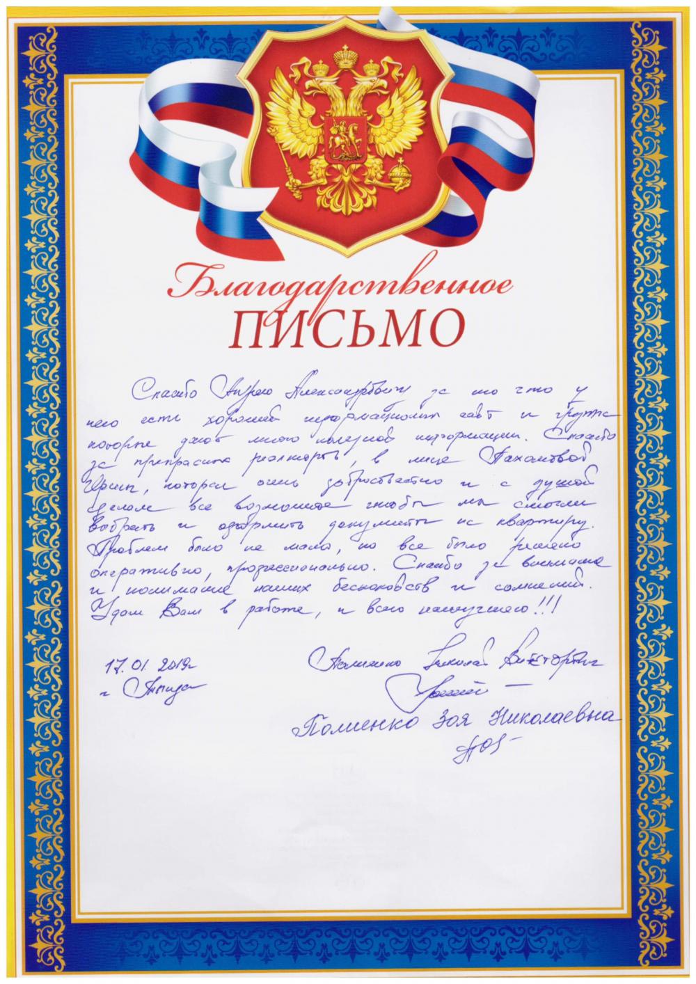 Спасибо Андрею Александровичу за то, что у него есть хороший информационный сайт и группа, которые дают много нужной информации. Спасибо за прекрасного риелтора Пахомову Ирину, которая очень добросовестно и с душой сделала все возможное чтобы мы смогли выбрать и одобрить документы на квартиру. Проблем было не мало, но все было решено оперативно, профессионально. Спасибо за внимание и понимание наших беспокойств и сомнений. Удачи Вам в работе, и всего наилучшего!!!