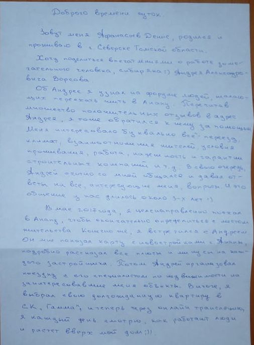 Об Андрее я узнал на форуме людей, желающих переехать жить в Анапу. Перечитав множество положительных отзывов в адрес Андрея, я тоже обратился к нему за помощью.