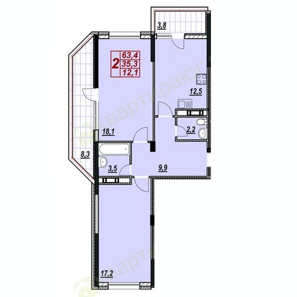 Две изолированные комнаты. Спальня 17 кв. метров. Гостинная 18 кв. метров, с выходом на большую застекленую, утепленную лоджию площадью 8,3 кв. метров.