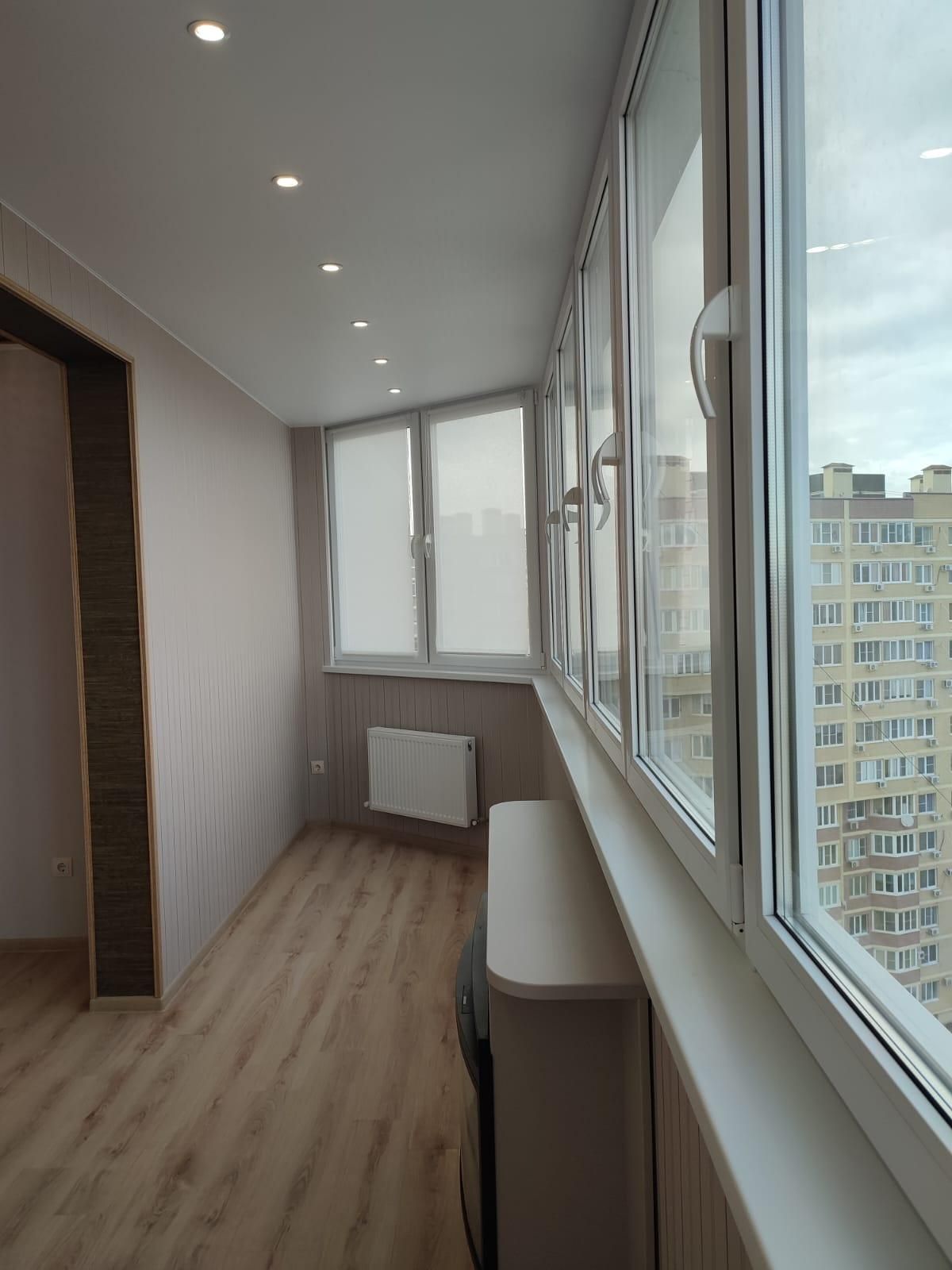 Кухня 12,5 кв. метров из нее выход на утепленную застекленную лоджию 3,8 кв. метров.