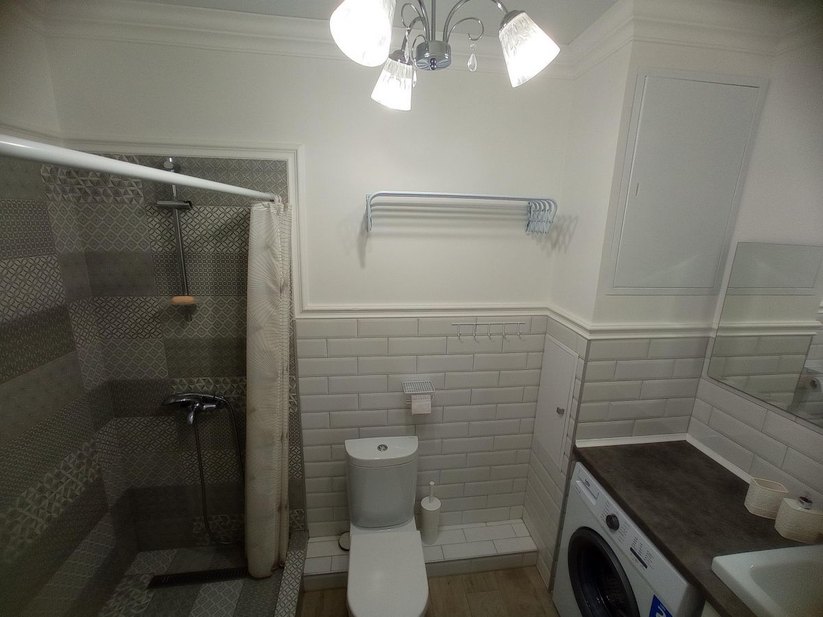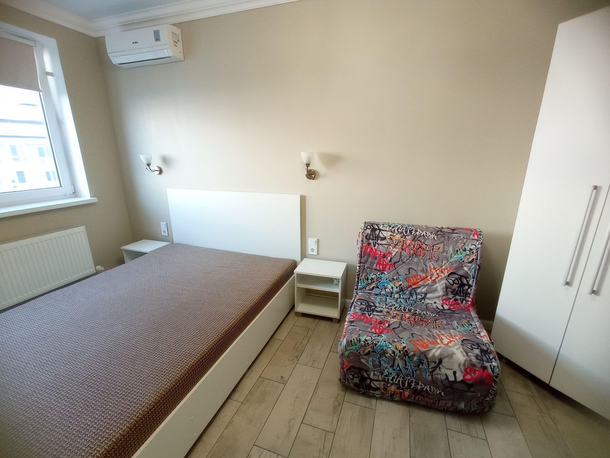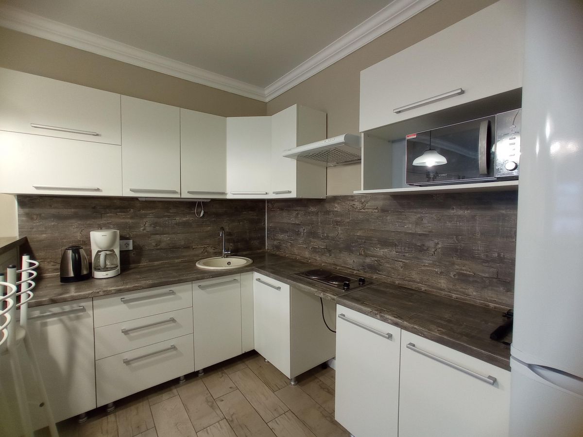 В квартире имеется все необходимое для комфортного проживания: кухонная мебель со всей бытовой техникой, спальные места и зоны хранения вещей в спальне.