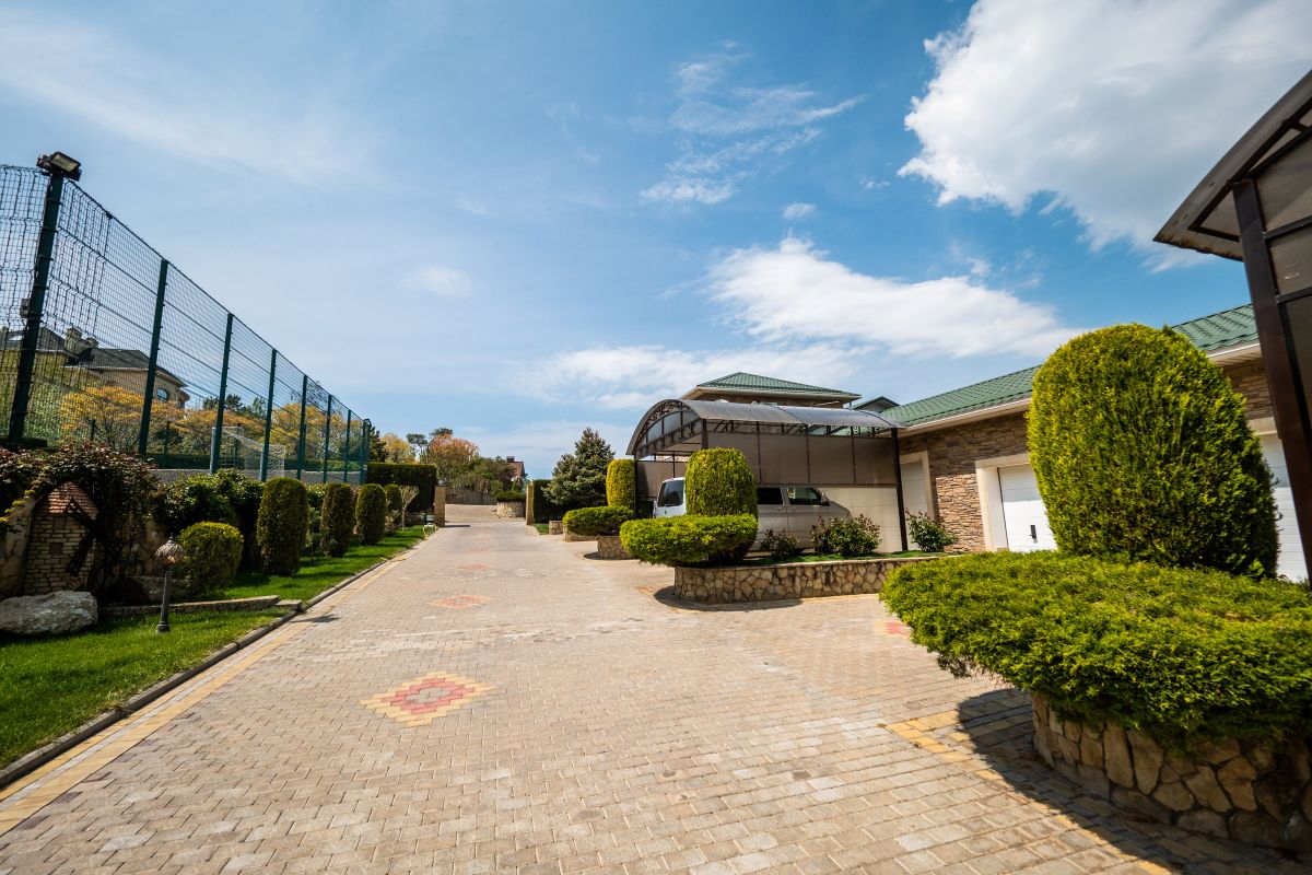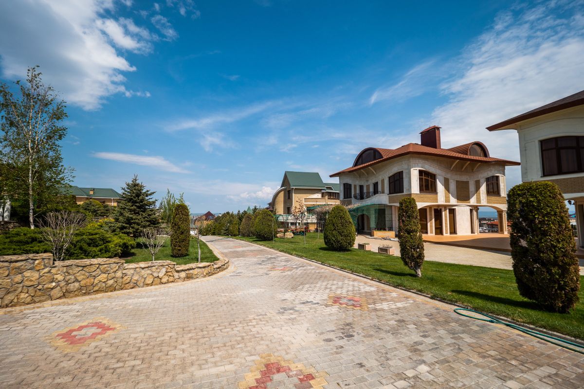 В закрытом коттеджном поселке расположены 12 домов, территория поселка находится под охраной и видеонаблюдением. Жилым комплексом предоставляются круглогодичные услуги персонала по работе с ландшафтным дизайном на придомовой территории, есть собственный трансфер, спортивный комплекс (совмещенная баскетбольная и футбольная площадки, теннисный корт), открытый бассейна, банный комплекс, детская площадка, общая мангальная зона, большая парковая территория.