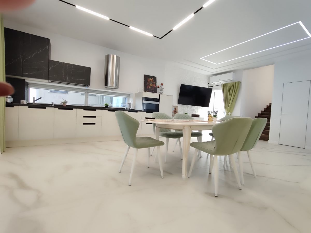 Продается уютный и стильный дом с 4 комнатами на 2 этажах общей площадью 209 ква.м. на земельном участке 7 соток. Дом построен в стиле Хай-Тек,, модный и презентабельный вариант отличается своим уникальным дизайнерским ремонтом, который придает вашему дому особый шарм. Мебель, которая находится в доме, останется для новых владельцев, что позволит вам сэкономить время и деньги на оснащении интерьера.