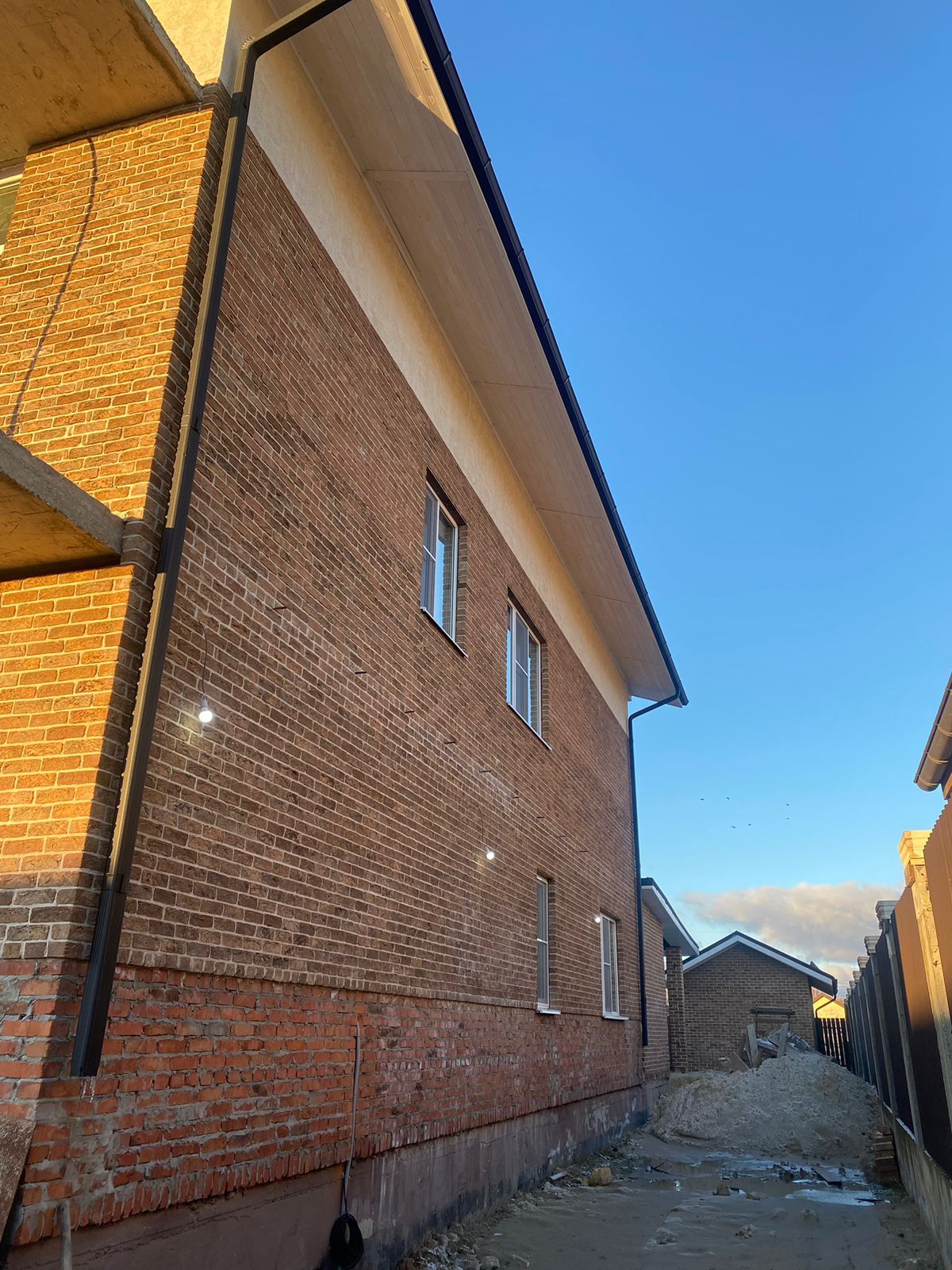 В доме заведены все коммуникации, выполнена планировка участка.